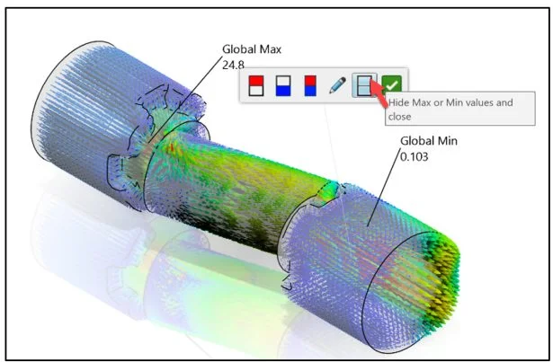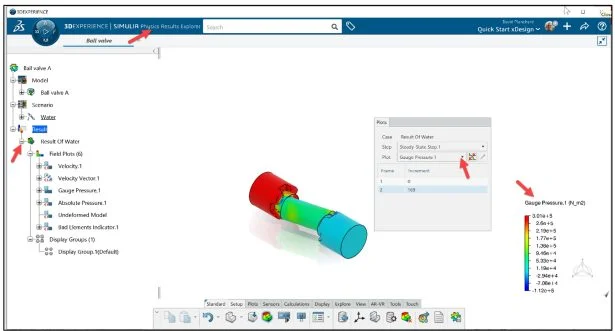 Run the Simulation study. Use the Physics Results Explorer App. Save the Physics Simulation study. Close the simulation study. Save the Ball valve in SOLIDWORKS. Close the active session of SOLIDWORKS.