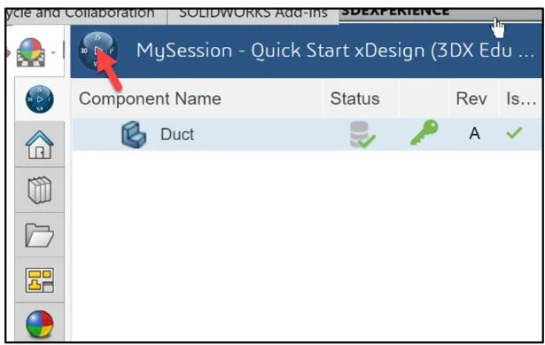 In the next lesson, CFD Lesson 5: SOLIDWORKS Duct and 3DEXPERIENCE Fluid Scenario Creation (Part 2), start a SOLIDWORKS session. Connect to the 3DEXPERIENCE platform. Utilize the 3DSpace widget from the MySession panel in the SOLIDWORKS Task Pane.