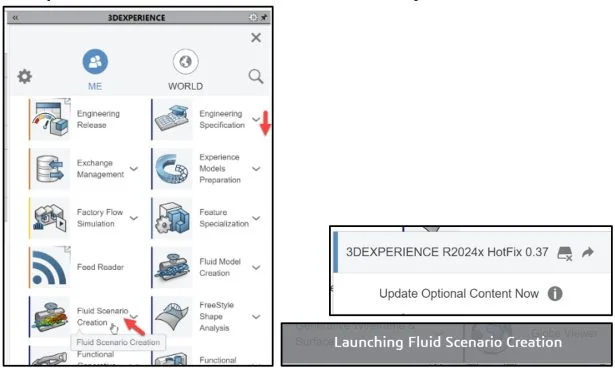 Launch the Fluid Scenario Creation App. If this is your first time using a 3DEXPERIENCE Simulation App, or an update is available, download the needed App information on your computer. It is recommend to restart your SOLIDWORKS session.