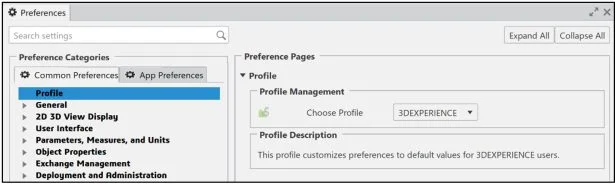 Select a Profile from the Profile Management drop-down menu (SOLIDWORKS).