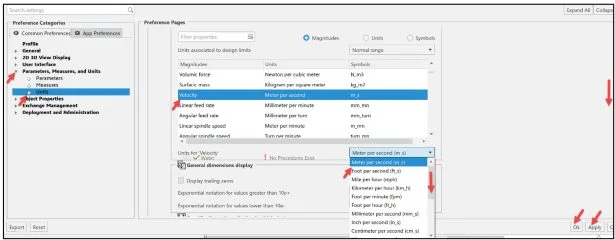 Note: To modify the default unit, drag the inside and outside slider downward to locate the magnitude, select the magnitude, select the new unit from the drop-down menu as illustrated.