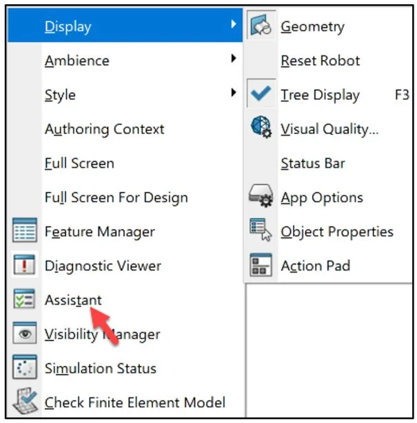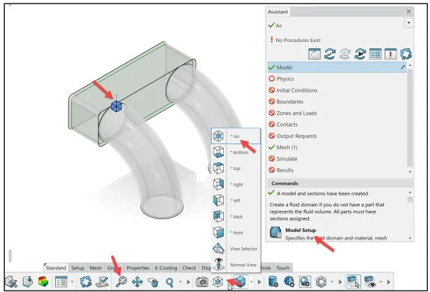 Launch the Fluid Scenario Creation App. Create the FE Model or FEM. Use the Assistant dialog box and the Action toolbar to create an internal flow simulation that models the mechanical forces and dynamics of steady state fluid flow.