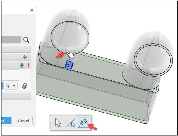 Click Opening.2 (outlet) from the Graphics area as illustrated. Opening.2 is displayed in the Support box.