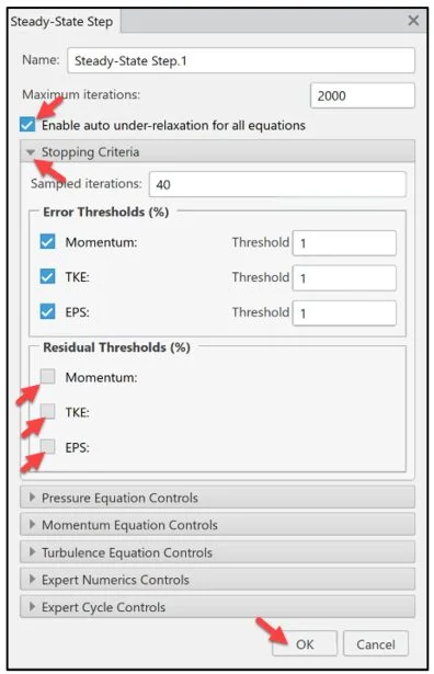 Accept the defaults. Analysis type: Steady-state and 2000 for Maximum iterations.