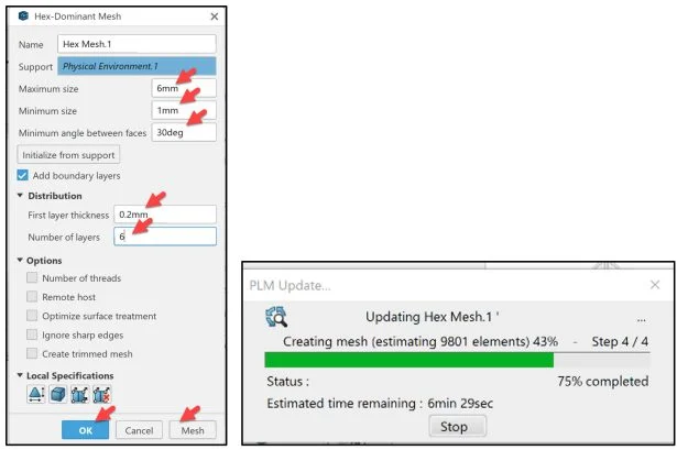 Define a fluid region internal to the model. Define the fluid. Specify the physics behavior of the fluid. Customize the Hex-dominant mesh.
