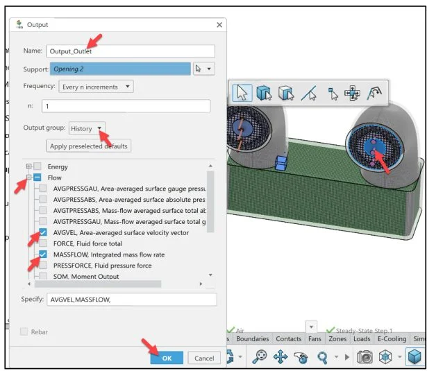 Output Requests: Pressure, Flow Velocity and Mass Flow Results