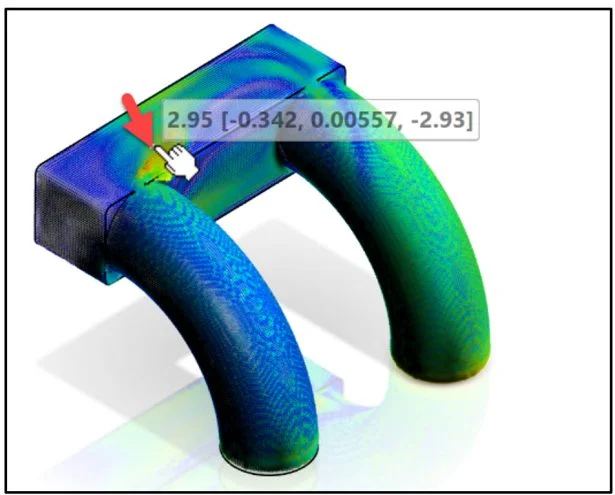 Click a point on the model as illustrated. View the Velocity Vector at that point. A Pop-up menu is displayed. Note: To deselect the displayed point, click in the Graphics area.
