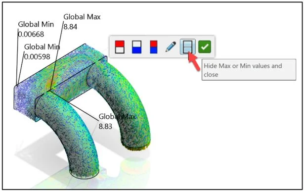 Run the Simulation study. Use the Physics Results Explorer App. Save the Physics Simulation study. Close the simulation study. Save the model (Physical Product) in SOLIDWORKS. Close the active SOLIDWORKS session.