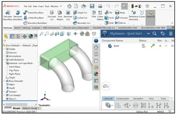 Start with the SOLIDWORKS Duct part and save to cloud storage using…