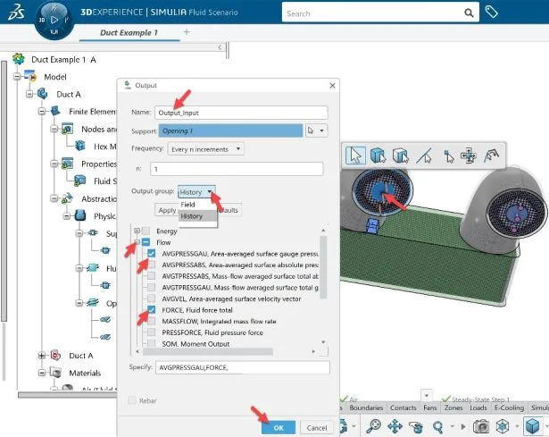 Select History from the Output group drop-down menu. Note: You can create two types of sensors to display different types of data: Field sensors and History sensors. Depending on the analysis case type you simulate, some Apps automatically create a set of field and history sensors by default. Default sensors streamline your workflow so you can quicly analyze your simulation results.