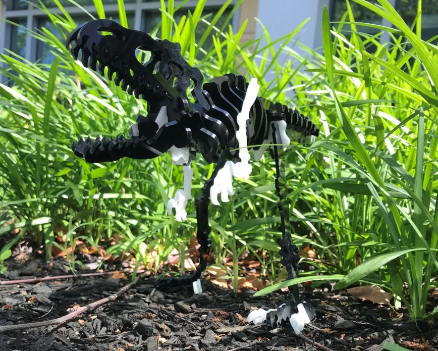This time I used black acrylic for a slick look. I broke a couple of pieces as I assembled the dinosaur because acrylic is very brittle. Luckily, some of the white pieces fit where I had broken some parts, so I had a dinosaur skeleton model for my desk.