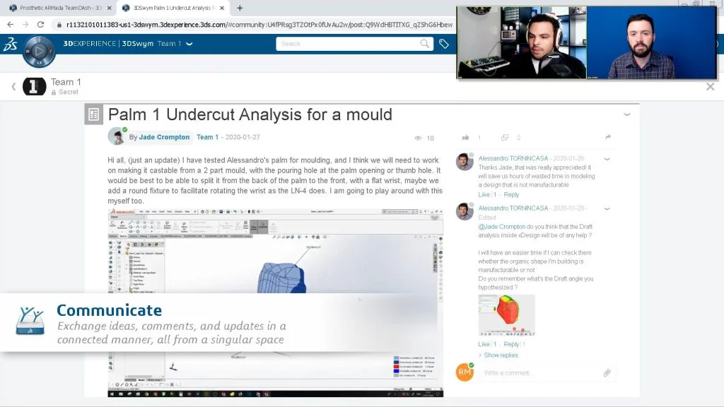 This not only contributes to the (likely) already high-stress level of getting things done remotely when you aren’t used to it; it’s just plain ineffective. Rob (and Aidan before him) talks a lot about how great the 3DSwym communities were for his team, and how they could be used by anyone in industry today.