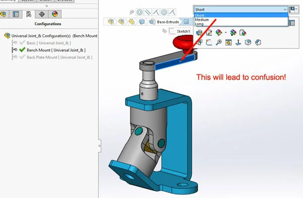 If you do a range of similar products, you will know that configurations of your parts will save you a whole lot of work on a daily basis, but once you have started putting these parts into assemblies it can get confusing. Basically, the possibilities all multiply, as does the potential for selecting and changing the wrong thing…