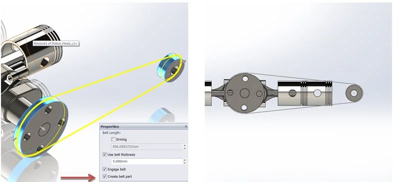 And that’s it! I’ve quickly and easily added a new part to my assembly without even having to create a sketch by using in context top-down modelling. Using the same quick process, I’ll also add another pulley to simulate how this crankshaft could connect to the camshaft.