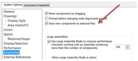 Before beginning you can set any subsequent parts created in the assembly to save as external part files under system options/assemblies. If you do so, you will be prompted to define a save location upon new part creation.