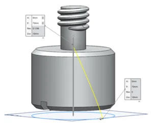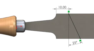 Begin by creating a straight-line path on the face where you’d like to create the knurling feature. The dimensions used should reflect the position where you’d like the knurling to start and equally importantly, the angle at which the knurling directions will intersect.