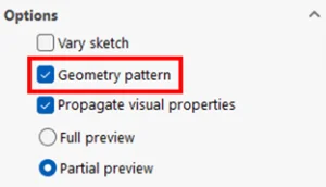Additionally, enable the Geometry Pattern option in the pattern PropertyManager to improve processing speed whenever possible.