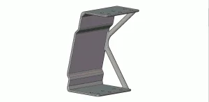 I started with a sheet metal feature to quickly get the shape with a consistent wall thickness and smooth bends. I trimmed away the side profile shape, then added some additional jogs for style and strength. I added an additional platform to the left bracket for a little extra tray space where the keyboard sits. I wanted to keep deflection low so I added some support ribs and began simulating how it would perform. First pass results showed this was a bit over-designed so I knew I had plenty of opportunity to reduce cost.