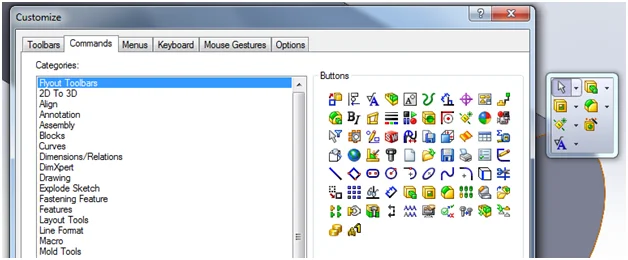 The other day while watching a video on some of the new SolidWorks 2013 features, I noticed that one of the Flyout Toolbars for Annotations had a command for Cosmetic Threads that I did not have in my Flyouts, so I set about going to find out how to make the same change. I looked in all of the standard places first, Help, Knowledge Base, etc. and found no real straight forward answer. So I resorted to my other bag of tricks, below is what I found and I think I will add this to my other collection of Redneck Workarounds.