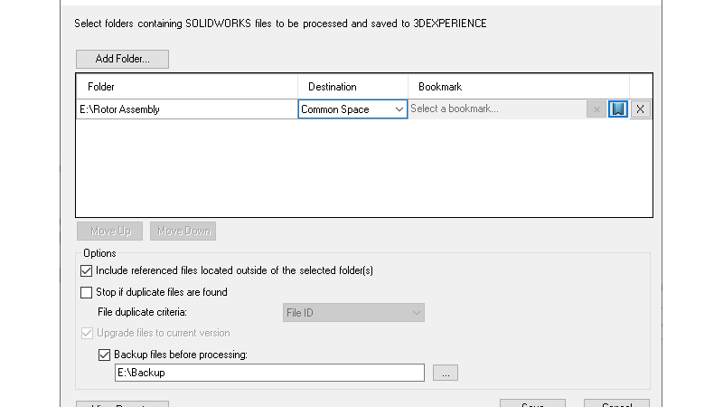 With the Batch Save to 3DEXPERIENCE option, you can copy an entire folder structure at once so you don’t have to save folders individually or recreate them on the 3DEXPERIENCE platform. Plus, you can add a Bookmark when you go to save and easily find the folders in the Bookmark Editor.
