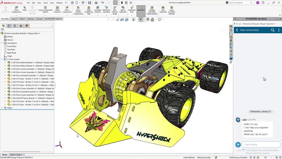 One of the most significant advancements is the ability to interact with your model using natural language. Instead of navigating through multiple menus to find information, you can simply ask your assembly questions.