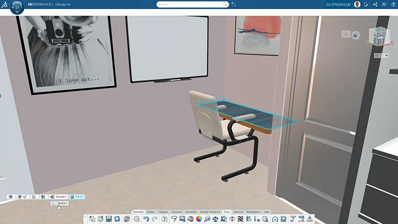 Designing within the context of your HomeByMe project is an effective way to work with products in their natural environment. As you’ll see in the examples in this blog, I brought my HomeByMe model into xDesign to better design and test a custom desk. I wanted to make sure it would fit in the corner of my home office in the model.