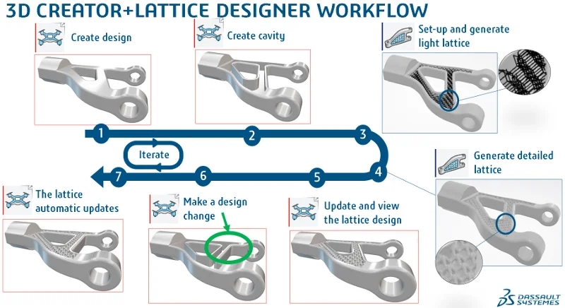 With 3D Creator and Lattice Designer you will get a continuous workflow from CAD to simulation, and preparation of prints so you don’t lose associativity, and the whole process is traceable as it can be stored on the 3DEXPERIENCE platform.