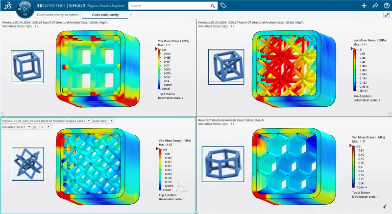 What’s also nice about Lattice Designer and the 3DEXPERIENCE Works solutions is that you don’t have to wait for an annual release to get your hands on the latest features as enhancements are released in multiple updates throughout the year. As of the latest update, you can now open a 3D Creator CAD model in Lattice Designer, set up and generate the lattice structure there, and then simply update the 3D Creator model to visualize it and use the lattice in downstream operations such as measuring mass properties, cutting sections, creating drawings.