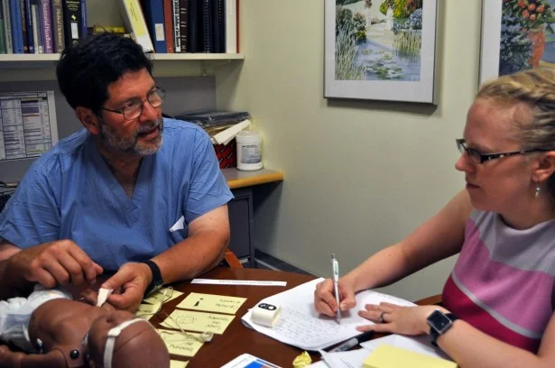 How might we create a device that clearly indicates how to put it on the newborn’s foot so the LED light and the detector will be aligned? Dr. Ringer looked down at his own feet. Like so many medical professionals, he was wearing crocs that day. His observation; no matter what size foot you have, you can always correctly orient your foot inside a large croc.