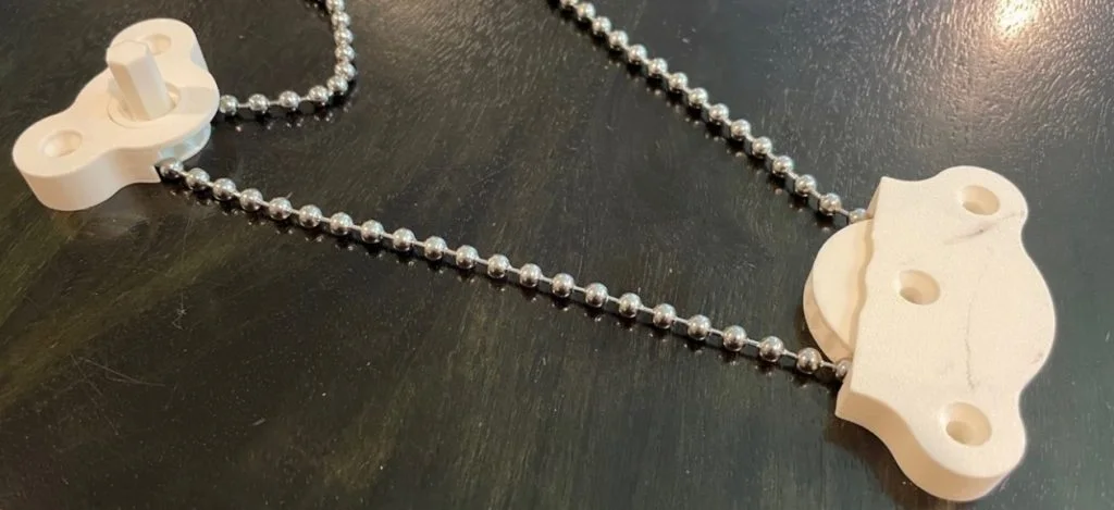 Within the hinge area, Chinloo and Sal also cleverly included a channel from the motor to the wing for the bead chain to run through so it didn’t get pinched or caught in the movement. The channel allowed for the chain to travel at the same angle in which the wing was positioned.