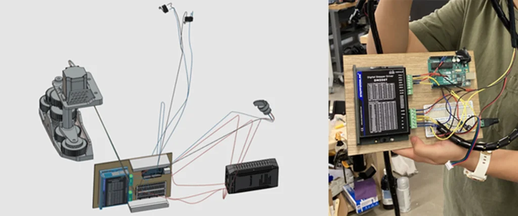 But now, how do you motorize Adrian’s arm and wing mechanisms? Yun Li took on the challenge. Similar to Dan’s background in designer experience, Yun Li is also a UX designer. She specifically works on the browser-based solution xMechatronics, which combines mechanical and electronic virtual solutions. She thought volunteering to take on the motor task would be a perfect way to help explore the workflow and challenges users face, while also building her understanding of mechatronics.