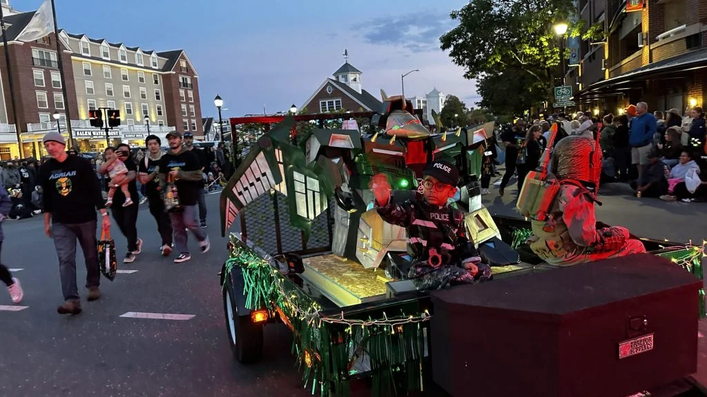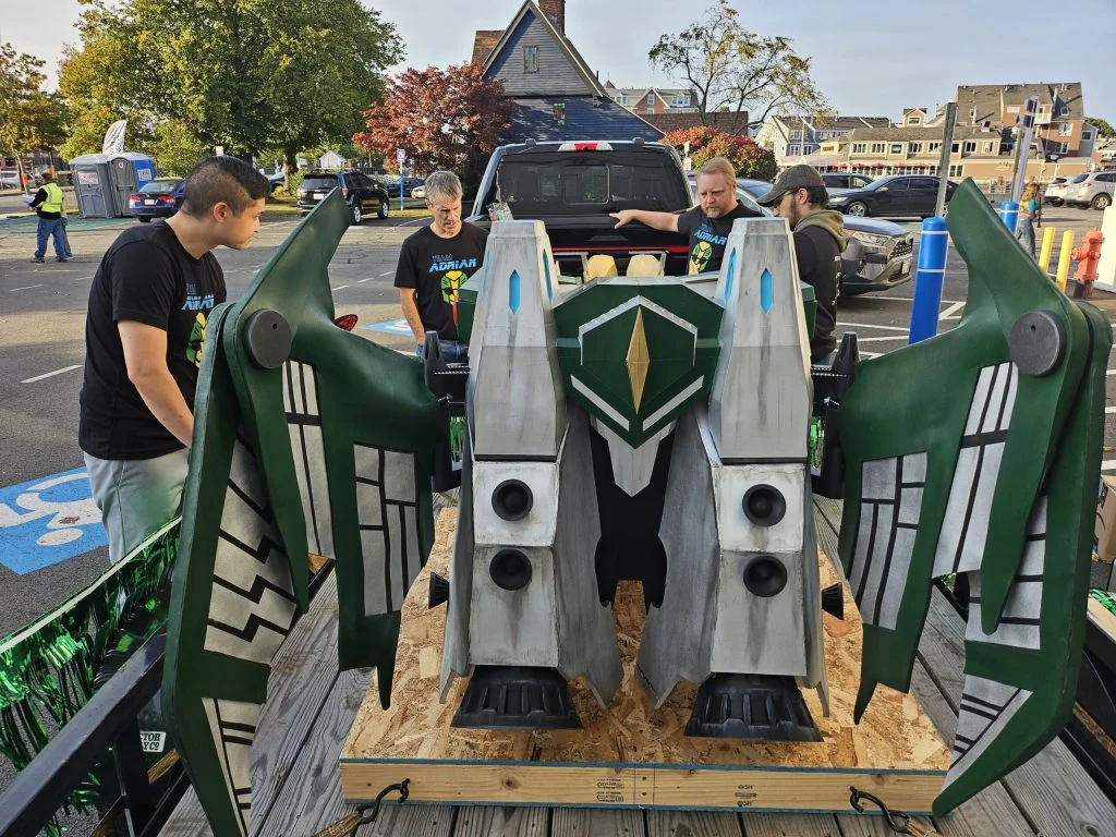 The build team helped Adrian into the costume, where he proceeded to drive all over the Salem Common, to the delight of passersbys. NBC Boston interviewed him in his costume and Adrian loved the attention.
