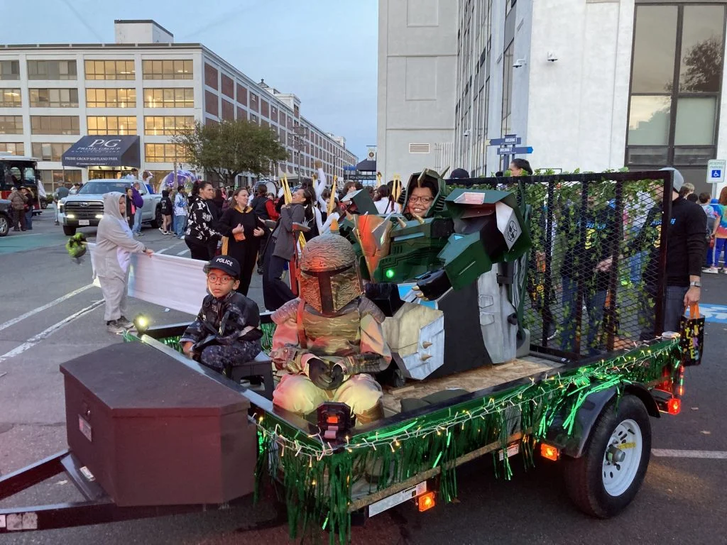 It was one heck of a parade opener. All throughout the route people gasped, yelled, and clapped for Adrian. Many people in the crowd gaped at John Sweeney’s truck and called out Pete for his Mandalorian costume, but when Adrian hit the switch to transform his costume, all eyes were on him. He was a hit.
