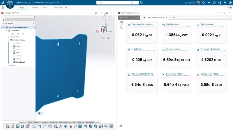 You also have digital continuity between your design lifecycle assessment so you can quickly switch back and forth between 3D Creator and Eco-Design Engineer to see how design changes will affect your product’s eco footprint in real time.