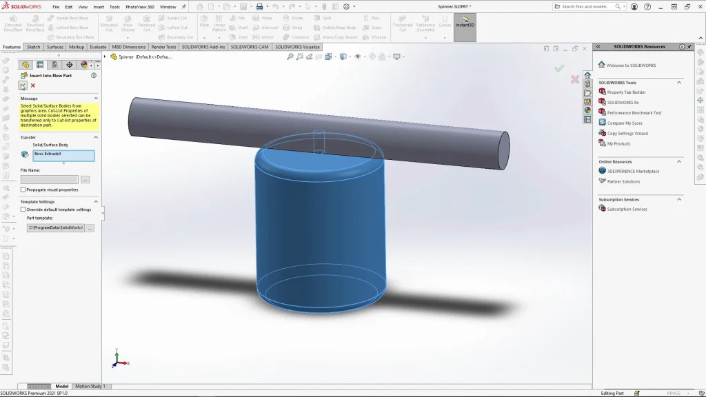 In this tutorial see how to model the domino and 4 track parts for an assembly. The domino run is made up of a starter wheel, a bridge, spinner and ramp with ball. All the pieces are very simple to create with just a few sketches and features. The moving parts of the run, the starter wheel and spinner were created as parts to begin with. They were made up of separate bodies so that they are simpler to model as I know the parts fit together, but also so I could export the bodies into new parts. The starter wheel and spinner were both split into two separate part documents and assembled together in the assembly with mates.