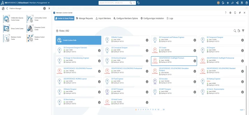 Getting others on board who are new to 3DEXPERIENCE DraftSight is a breeze with our administration control features, such as the Member Control Center. Easily grant members a role or app by searching for their profile on the 3DEXPERIENCE platform and simply drag and drop it to their profile and the role is instantly granted.