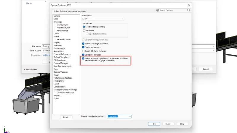 - New Export Large Assembly Components as Separate STEP Files – speed up your downstream processes.