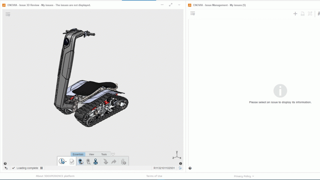 Turning over to Pete, the team’s project manager, we see his dashboard showing all issues, their status and where they reside within the current assembly. The newly submitted ‘handlebar and board interference’ flag shows that it’s in a new ‘To Do’ issue. Pete get started to further investigate the problems’ severity and any downstream implications to the project’s completion.