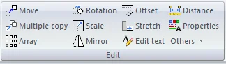 The “Drawings” tab has many familiar drafting tools to quickly change or add details to your drawings. All of the obvious ones are there: lines, arcs, rectangles, circles, text, etc. You’ll also find tools like move, copy, offset, stretch, and mirror.
