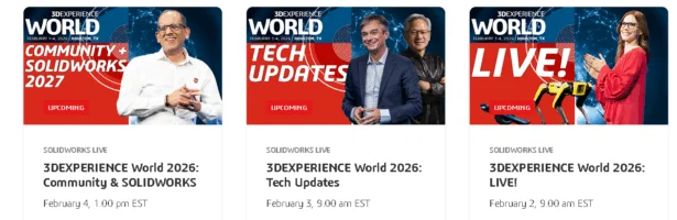 If you teach, use or love SOLIDWORKS and want to know the latest and greatest technology, along with some really cool people and products, check out a list of events from my friends, Sean O’Neill. and Jesse Sprague, Sean and Jesse are managing the SOLIDWORKS Live anchor desk, streaming live from Houston, TX February 2 – 4, 2026 at 3DEXPERIENCE World 2026. 3DEXPERIENCE World is the largest live event for the SOLIDWORKS community.