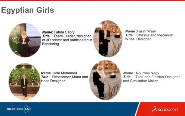 On behalf of the SOLIDWORKS Community and 3DEXPERIENCE Student Community we wish the Egyptian Girls team the best!