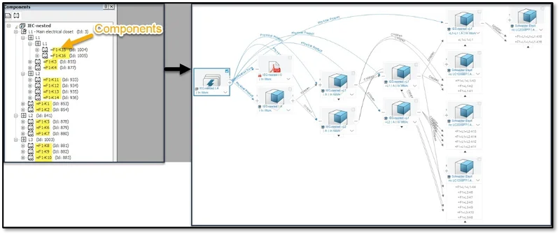 Even though this comes from the schematic (2D only), it can be combined with the product structure from the 3D mechanical design that includes mechanical parts such as pumps, tanks, etc., as part of the product structure – all on the 3DEXPERIENCE platform.