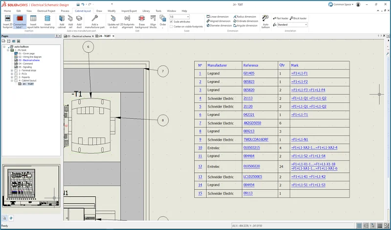 Speed up the creation of great electrical documentation by inserting auto balloons into 2D cabinet layout drawings. Simply click Cabinet Layout > Auto Balloon, then select a drawing view in which to insert the balloons.