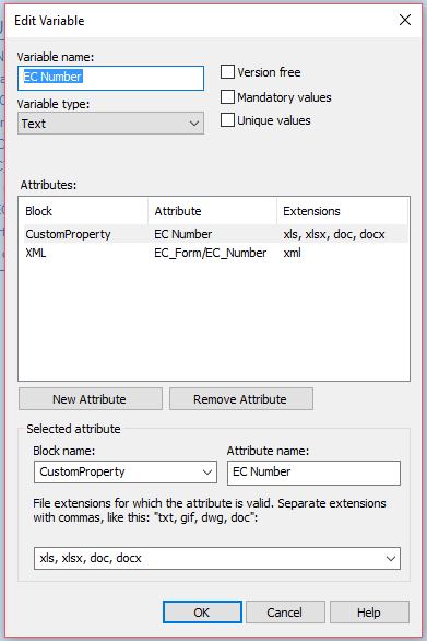 Now, to map these properties to our file and our data card, we will need to start with the variable setup. For Microsoft Office documents, the setup is pretty simple and should be familiar. For each variable we are mapping, we will want to use the attribute block CustomProperty. This should be familiar as it is the same that we would use for SOLIDWORKS documents.