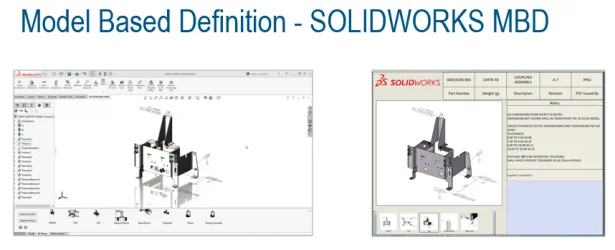 Another partner taking advantage of SOLIDWORKS MBD is CAMWorks. By interpreting 3D dimensions and tolerances, CAMWorks can automatically make decisions about which manufacturing operations to choose. This provides an MBM, or Model-Based Manufacturing, piece to the Manufacturing Ecosystem. With SOLIDWORKS MBD and CAMWorks, users get intelligent manufacturing based on tolerances, with additional tools and operations automatically generated with dimensional and tolerance changes.