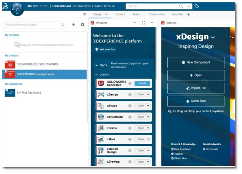 Per customer request we’ve cleaned up the default dashboards and combined them into a single, easy to find SOLIDWORKS 3D Creator home dashboard for all your roles. This reduces clutter and helps keep you organized, and most importantly lets you access your roles faster.