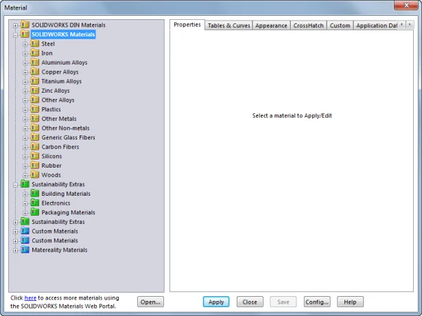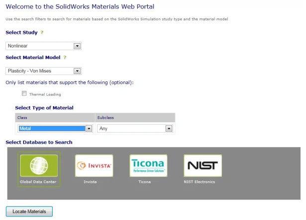 The SOLIDWORKS Materials Web portal offers unique material library for the Product Engineers so they can test their design effectively without the need to look in books, on the web or with third party tools.