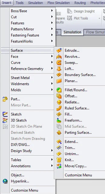 2. Select Insert, Surfaces