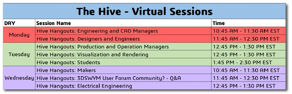 We will review the agenda for The Hive, which consists of our amazing Hive Hangouts. We also want to highlight a fantastic Podcast that has become a staple part of the SOILDWORKS user community. Let’s break it down to make sure you don’t miss any of the action. You can also search for “The Hive” in the session catalog to see all the virtual sessions that are taking place in The Hive.