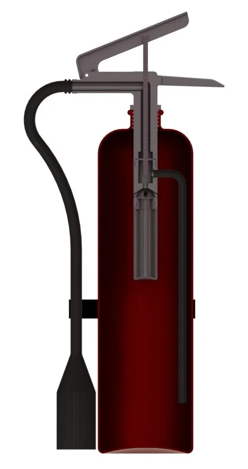 For today’s post I decided to make a fire extinguisher. This was a really fun project to build. I was not sure exactly sure how the inside of the fire extinguisher worked but with some research and some designing on my end this is what I came up with. My idea is there is a CO2 canister that when the handle is squeezed it punctures the canister releasing the CO2. This then compresses the fluid that is in the can. When the handle closes this also open a value. The extinguishing liquid travels up the tube and out towards the fire. The tank was created using a revolve feature as the entire part was symmetrical about the vertical axis. The top of the extinguisher was created using a number of extrusions and a swept feature for the threads. This part was rather fun to make as there were a lot of different contours and cuts that I needed to make so that it would be functional. The hose on the inside and outside were both created using sweeps with the thin option. This allowed me to create just the outside profile and then set the thickness that I wanted for the entire tube. Another part that was a challenge was the part that connected the CO2 canister as well as the inner hose. This part needed to have ports that would let the CO2 out as well as a hole for the hose. The ports were created using a revolved cut so that they would be tangent to the dome on the inside of this part. The dome was made so that the escaping CO2 gas would be channeled out through these ports. I included a section view of the model so that you would be able to see the inside. Feel free to download the model and take a closer look. Enjoy!